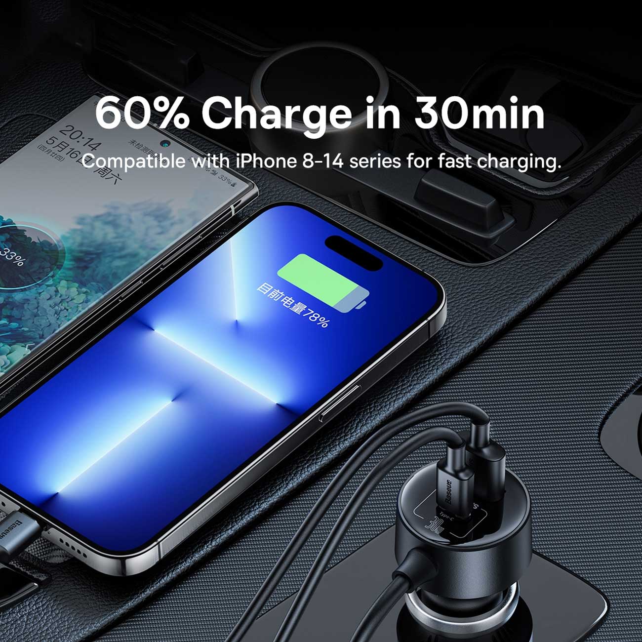 Baseus High Efficiency Pro 30W 2 in 1 Car Cigarette Lighte BS-CG010