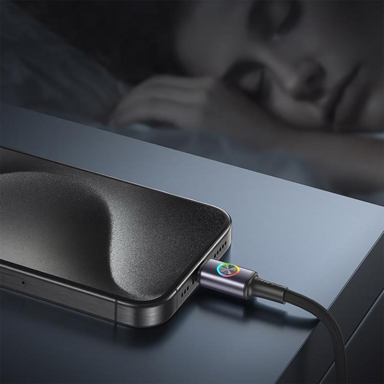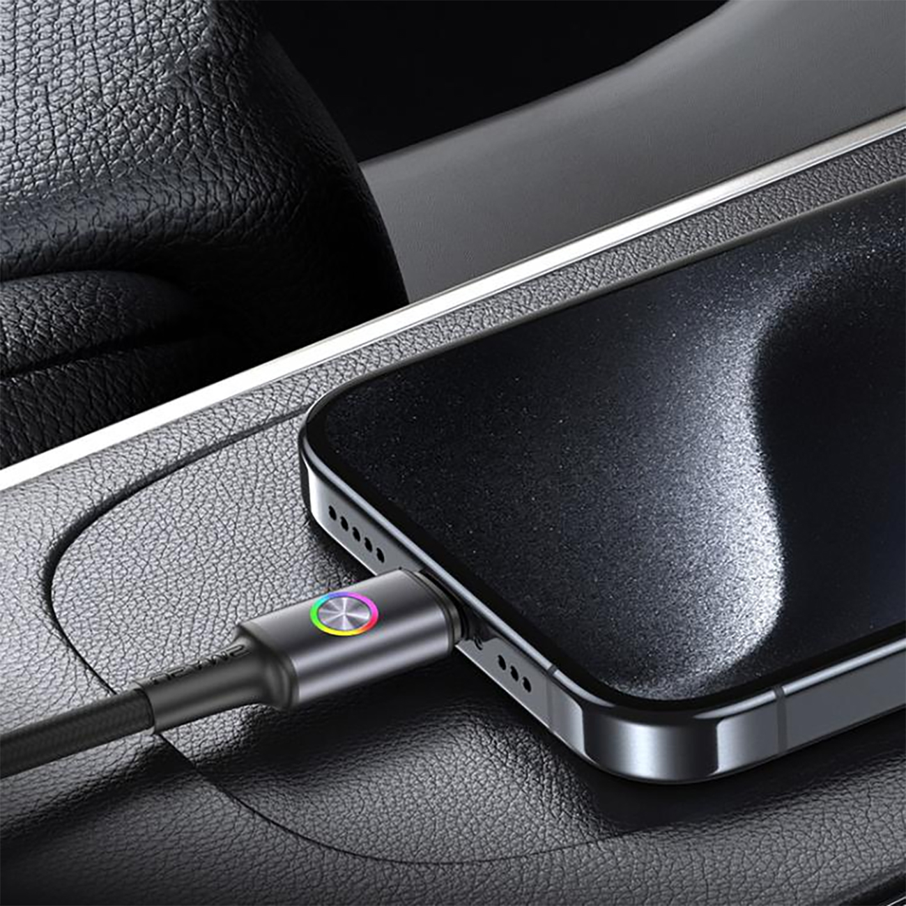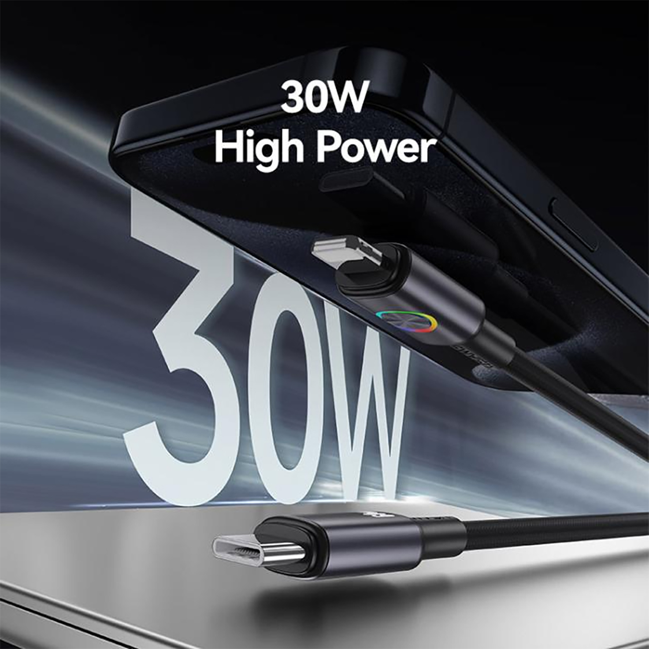 USAMS SJ753 30W Type-C to 8 Pin Aluminum Alloy Data Cable with Colorful Light 1.2m